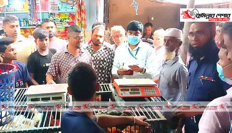 কুমিল্লায় জাতীয় ভোক্তা অধিকার সংরক্ষণ অধিদপ্তর, কুমিল্লা জেলা কার্যালয়ের অভিযানে ২ কেজি সোনালী মুরগীর ওজনে ৪০০ গ্রাম কম দেওয়ায় ২০ বিশ হাজার টাকা জরিমানা করা হয়েছে। শুক্রবার নগরীর রাজগঞ্জ এলাকার মুরগীসহ নিত্যপণ্যের বাজারে তদারকি অভিযান পরিচালনা করাকালে এ জরিমানা করা হয়। অভিযানে চারটি প্রতিষ্ঠানকে বিভিন্ন অভিযোগে ২৫ হাজার ৫শ টাকা জরিমানা করা হয়।