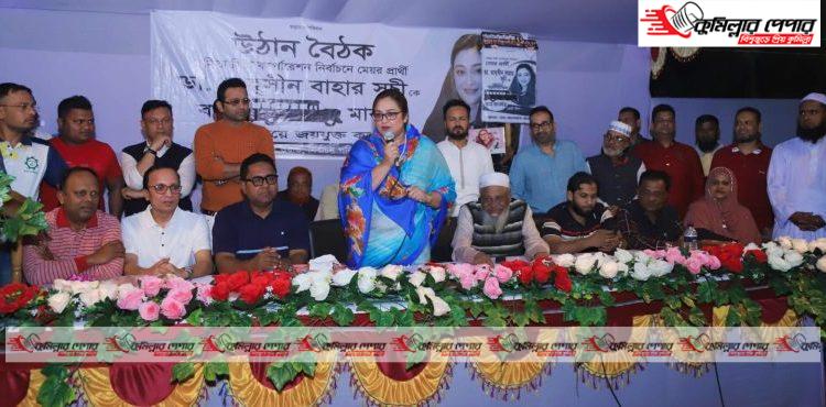 কুমিল্লা সিটি কর্পোরেশন উপ নির্বাচনে মেয়র পদে মহানগর আওয়ামী লীগ মনোনীত প্রার্থী মহানগর আওয়ামী লীগের সাংগঠনিক সম্পাদক ও মানবিক নেত্রী ডা. তাহসীন বাহার সূচী বলেছেন, আমি একজন মুক্তিযোদ্ধার সন্তান। এদেশটা অনেক কষ্টে অর্জিত হয়েছে। ৩০ লাখ শহিদের রক্ত এ মাটিতে ভিজেছে আর দুই লাখ মা-বোনের সম্্রাণ হারিয়েছে। তাই তরুনদের ভোট হউক মুক্তিযুদ্ধের পক্ষে, উন্নয়নের পক্ষে ও দূর্ণীতির বিরুদ্ধে। শিক্ষিত ড্রাইভার ডা. তাহসিন বাহার সূচনা এবার উন্নয়নে বাস নিয়ে এসেছে। উন্নয়নের গাড়িতে দুই প্রজন্ম মুরুব্বী আর তরুণদের নিয়ে একসাথে চলতে পারে। আমি নগরপিতা বা নগর মাতা হয়ে নয়,নগরকন্যা হয়ে এ শহরটার উন্নয়ন করতে চাই। বয়স হয়ে গেলে সন্তান যেমন করে মা-বাবার সেবা যত্ন করে আমিও নগরকন্যা হয়ে এ নগরবাসীর পাশে থেকে উন্নয়ন ও সেবা করতে চাই। একটা পরিকল্পিত সুন্দর স্মার্ট সিটি গড়তে চাই । এবার আমার মুরুব্বি চাচা আর তরুণ ভাইদের সাথে মা-বোনেরা রয়েছে। মুরুব্বিদের অভিজ্ঞতা আর তারুণ্যের শক্তিতে আমি অনেক সাহস পাচ্ছি। আপনাদের এ ভালোবাসার শক্তি কুমিল্লা মানুষের কল্যাণে ব্যায় করব ইনশাআল্লাহ।