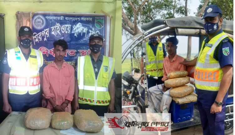 মিরপুর হাইওয়ে পুলিশ ফাঁড়ির ইনচার্জ মাসুদ আলম চৌধুরী জানান, মহাসড়ক দিয়ে মাদক যাচ্ছে এমন গোপন সংবাদের ভিত্তিতে বৃহস্পতিবার সকাল সাড়ে দশটার দিকে, কুমিল্লা-সিলেট আঞ্চলিক মহাসড়কের জেলার ব্রাহ্মণপাড়া উপজেলার মকিমপুর এলাকায় সন্দেহভাজন একটি অটোরিকশা আটক করে হাইওয়ে পুলিশ। তল্লাশি করে অটোরিকশার সিটের নিচ থেকে উদ্ধার করা হয় ৫ কেজি গাঁজা। মাদক পরিবহনে জড়িত থাকার অপরাধে গ্রেফতার করা হয় অটোরিকশার চালক মনির হোসেনকে।