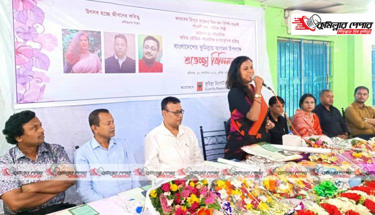 কুমিল্লায় ভারতের ত্রিপুরা রাজ্যের ৪ গুনী সাংবাদিককে সংবর্ধনা দেয়া হয়েছে। রোববার সন্ধ্যায় কুমিল্লা রিপোর্টার্স ইউনিটির আয়োজনে কুমিল্লা প্রেসক্লাব মিলনায়তনে এ সংবর্ধনা প্রদান করা হয়। সংবর্ধিত অতিথিরা হলেন, ভারতের ত্রিপুরা রাজ্যের রাজধানী আগরতলা প্রেসক্লাবের সাবেক সভাপতি জয়ন্ত ভট্টাচার্য, স্যন্দন পত্রিকা এবং টিভির পরিচালক অরিন্দম দে, বিশিষ্ট সাংবাদিক এবং সাংস্কৃতিক কর্মী অমিত ভৌমিক, বিশিষ্ট বাচিক শিল্পী শাওলী রায়।