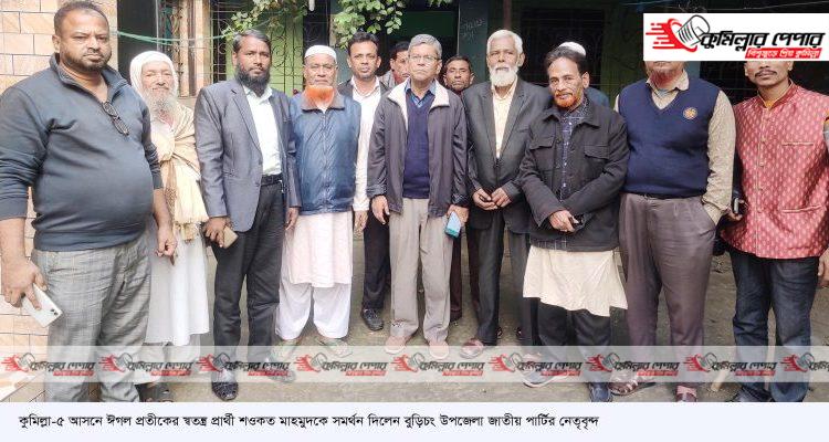 বুড়িচং উপজেলা জাতীয় পার্টির পক্ষ থেকে এক বিবৃতিতে জানানো হয়, জাতীয় সংসদ নির্বাচনে কুমিল্লা- ৫ আসনে বিশিষ্ট সাংবাদিক ও কলামিষ্ট, জাতীয় প্রেসক্লাবের সাবেক সভাপতি, ঈগল প্রতীকের স্বতন্ত্র প্রার্থী শওকত মাহমুদকে সমর্থন জানিয়েছেন জাতীয় সংসদের বিরোধীয় নেতা বেগম রওশন এরশাদ এমপি’র পক্ষ থেকে বুড়িচং উপজেলা জাতীয় পার্টির নেতৃবৃন্দ।