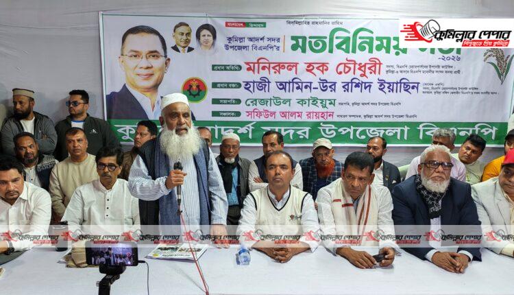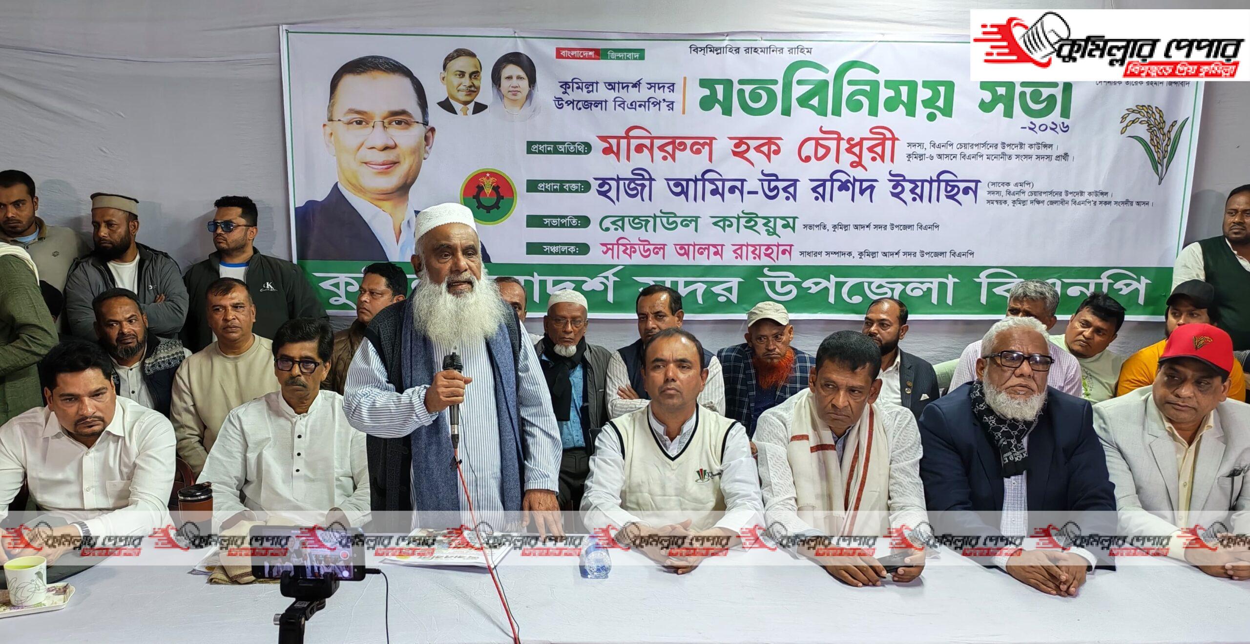 মঙ্গলবার (২০ জানুয়ারি) নগরীর ধর্মসাগর পাড়ে আদর্শ সদর উপজেলা বিএনপির মতবিনিময় সভায় প্রধান অতিথির বক্তব্যে তিনি এসব কথা বলেন।