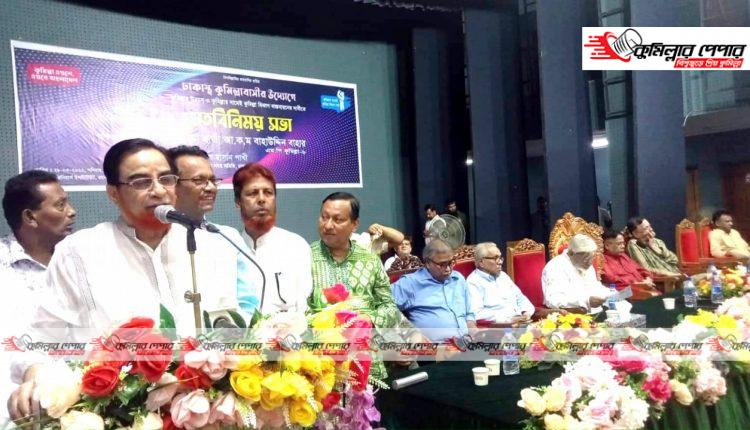 শনিবার সন্ধ্যায় ঢাকার রমনায় ইঞ্জিনিয়ার্স ইন্সটিটিউট মিলনায়তনে কুমিল্লার উন্নয়ন ও কুমিল্লা বিভাগ বাস্তবায়নের লক্ষ্যে ঢাকাস্থ কুমিল্লাবাসীর এ সাথে মতবিনিময় সভা অনুষ্ঠিত হয়।