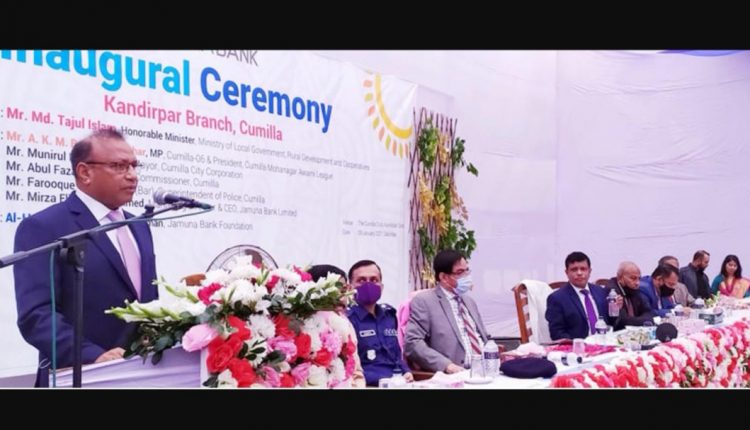 স্থানীয় সরকার, পল্লী উন্নয়ন ও সমবায় মন্ত্রী মো.তাজুল ইসলাম বলেছেন, কুমিল্লা আমার জেলা। সঙ্গত কারণে কুমিল্লা আমার প্রিয় শহর। এ শহরের প্রাণকেন্দ্র কান্দিরপাড়ে প্রতিষ্ঠিত যমুনা ব্যাংকের নতুন শাখা শুধু ব্যবসার জন্য নয়, আর্তমানবতার সেবায়ও কাজ করবে। সঠিক বিনিয়োগের মাধ্যমে মানুষকে প্রতিষ্ঠিত করতে সহযোগিতা করবে। এক সময় মানুষ ব্যাংকে এসে বসে থাকতো, এখন ব্যাংকের কর্মকর্তাদের মানুষের কাছে যেতে হবে বিনিয়োগের সঠিক ক্ষেত্র নির্বাচনের জন্য। সঠিক বিনিয়োগের মাধ্যমে ক্ষুদ্র ব্যবসায়ীদের বড় ব্যবসায়ী হিসেবে তৈরি করতে হবে। এই শাখার মাধ্যমে কুমিল্লার টাকা কুমিল্লাতেই বিনিয়োগ করা হবে। প্রয়োজনে ঢাকা থেকে টাকা এনেও কুমিল্লায় বিনিয়োগ করা হবে।