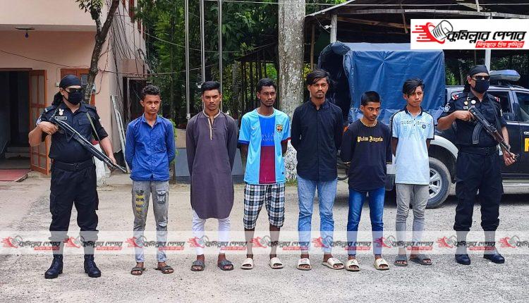 র্যাবের হাতে আটকৃত ৬ জন হলো নগরীর ফৌজদারী মফিজাবাদ কলোনী মোঃ রতন (২০), মোঃ আকাশ হোসেন (২০), মোঃ সিয়াম হোসেন (২০), ভাটপাড়া এলাকার মোঃ তানজীদ (১৯), কালিয়াজুড়ি এলাকার মোঃ ইয়াসিন আরাফাত।র্যাব জানায়, আটককৃতদের জিজ্ঞাসাবাদ করে তাদের দেখানো অবস্থান হতে ০২ টি সুইচ গিয়ার, ০৪ টি বড় ছোরা ও ০১ টি এন্টি কাটার উদ্ধার করা হয়। তাদের জেলার দেবিদ্বার ও সদর উপজেলার বিভিন স্থানে অভিযান চালিয়ে তাদেরকে আটক করা হয়েছে বলে র্যাব জানায়।