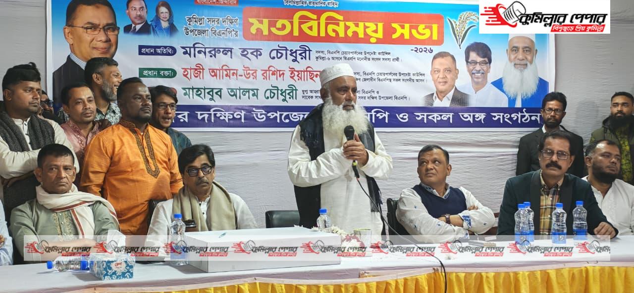 কুমিল্লা সদর দক্ষিণ উপজেলা বিএনপির মতবিনিময় সভায় প্রধান অতিথির বক্তব্যে কুমিল্লা-০৬ আসনের বিএনপি মনোনীত প্রার্থী মনিরুল হক চৌধুরী বলেছেন, ঐক্যবদ্ধ কুমিল্লা বিএনপি রাজনীতিতে নতুন ইতিহাস রচনা করেছে।