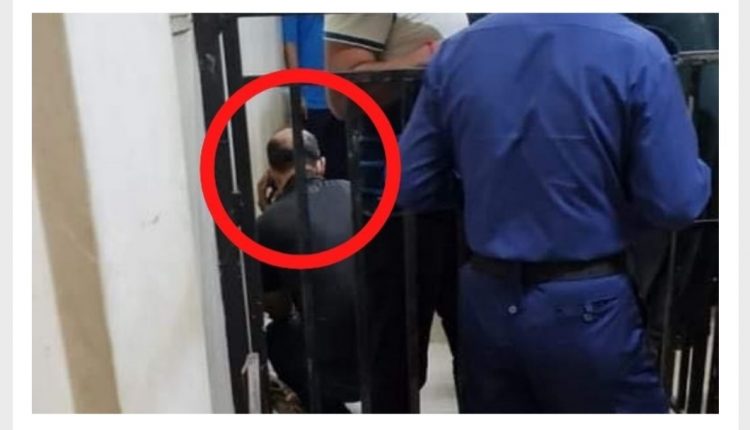 ছবিতে দেখা যাচ্ছে, আদালত কক্ষের কাটগড়ার ভেতরে হাঁটু গেড়ে বসে মোবাইল ফোনে কথা বলছেন বরখাস্ত ওসি প্রদীপ। এ সময় কয়েকজন ব্যক্তি আশপাশে দাঁড়িয়ে ছিলেন।