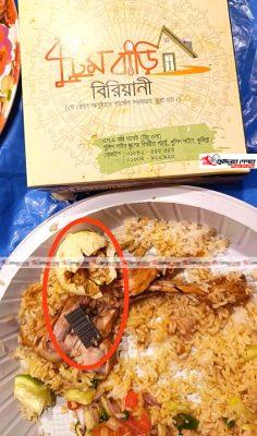 শনিবার (৮ এপ্রিল) সন্ধ্যায় ইফতার করার জন্য কুমিল্লা নগরীর কুটুমবাড়ি বিরিয়ানি হাউজ থেকে ৫ পেকেট মোরগ পোলাও আনা হয়। কুমিল্লার বিপনি বিতান ইস্টার্ন ইয়াকুব প্লাজার ব্যাবসায়ী রঙ বেরঙ দোকানের সত্ত্বাধিকারী জিল্লুর রহমান রাশেদ নিজের জন্য এবং দোকানের সহকর্মীদের জন্য কুমিল্লা পুলিশ লাইন মাঠের বিপরীতে এস এ, বারী মার্কেটে অবস্থিত কুটুমবাড়িতে রেষ্টুরেন্ট থেকে ইফতারির জন্য মোরগ পোলাও নিয়ে আসলে তিনি একটি প্যাকেট খুলে দেখেন সারিবদ্ধ ভাবে স্টাপলার মেশিনের ভেতরের অনেকগুলো পিন। না দেখে ভুলক্রমে তা দিয়ে ইফতার করে ফেললে কন্ঠনালীতে পিন আটকিয়ে যেকোন বড় রকমের দূর্ঘটনা ঘটতে পারতো।