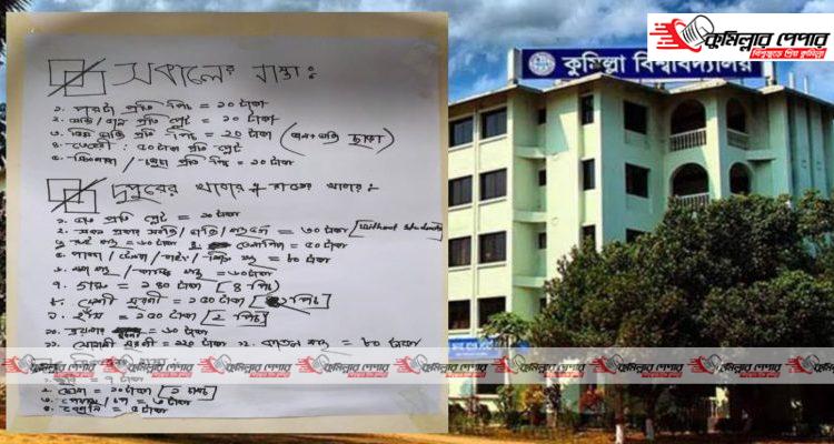 কুবির হোটেল ; খাবারের মূল্যতালিকা শিক্ষার্থীদের সামর্থ্যের বাহিরে