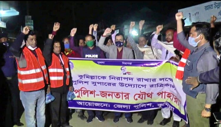 কুমিল্লাকে নিরাপদ রাখতে ‘পুলিশ-জনতার যৌথ পাহারা’(ভিডিও)