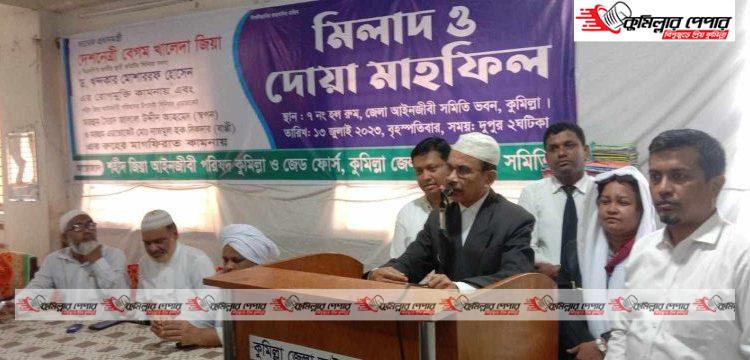 কুমিল্লায় শহীদ জিয়া আইনজীবী পরিষদের আয়োজনে, সাবেক প্রধানমন্ত্রী বেগম খালেদা জিয়ার রোগ মুক্তি কামনায় মিলাদ ও দোয়া মাহফিল অনুষ্ঠিত। বৃহস্পতিবার দুপুরে জেলা আইনজীবী সমিতির দ্বিতীয় তলার ৭ নং হল রুমে এ দোয়া মাহফিলের আয়োজন করা হয়।