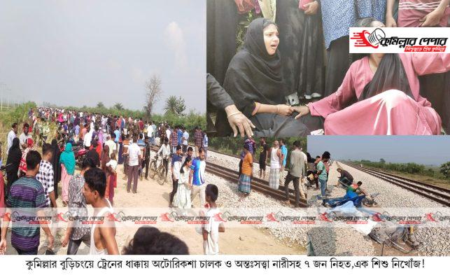 কুমিল্লায় ট্রেনের ধাক্কায় অটোরিকশা চালক ও অন্তঃসত্ত্বা নারীসহ ৭ জন নিহত