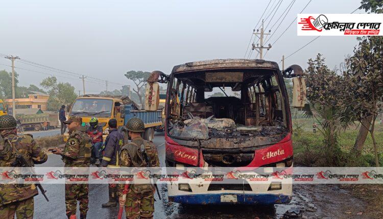 কুমিল্লার বুড়িচং উপজেলার ঢাকা-চট্টগ্রাম মহাসড়কে বাসচাপায় এক পথচারীর মৃত্যুর ঘটনায় উত্তেজিত জনতা একটি যাত্রীবাহী বাসে আগুন দিয়েছে।