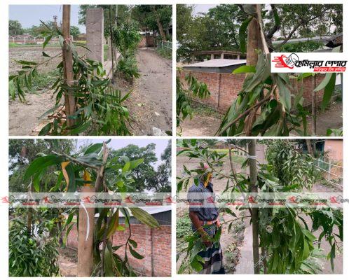 গত পাঁচ এপ্রিল রাতে দুর্বৃত্তরা ১২ টি পেপে গাছ, ১৬ টি আকাশমনি ও পাঁচটি সুপারি গাছ কেটে ফেলে। এর আগেও ৮ থেকে ১০ টি আকাশমনি গাছ কেটে ফেলেছিল দুর্বৃত্তরা।