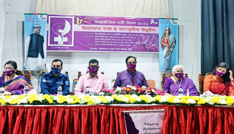 জেলা প্রশাসক কামরুল হাসানের সভাপতিত্বে অনুষ্ঠানে অন্যান্যদের মাঝে বক্তব্য রাখেন, রোকেয়া পদক প্রাপ্ত নারী নেত্রী পাপড়ি বসু, সম্মিলিত নারী ফোরামের সভানেত্রী দিলনাশিন মোহসেন।