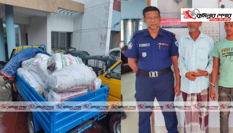 মঙ্গলবার (৬ সেপ্টেম্বর) বিকেলে বিষয়টি নিশ্চিত করেন বুড়িচং থানার এসআই মোঃ শরীফুর রহমান। পুলিশ সূত্রে জানা যায়, সোমবার (০৫ সেপ্টেম্বর) দুপুরে বুড়িচং উপজেলার বাকশীমূল ইউনিয়ন সীমান্ত এলাকা থেকে মিনি পিকআপ ও অটোরিকশা দিয়ে আমদানি নিষিদ্ধ ভারতীয় জর্জেট শাড়ি নিয়ে কুমিল্লা-বুড়িচং সড়ক দিয়ে পরিবহন করা হচ্ছে,এমন গোপন সংবাদের ভিত্তিতে থানার ওসি মোঃ মারুফ রহমানের নির্দেশনায় এসআই শরীফুর রহমানের নেতৃত্বে কুমিল্লা-বুড়িচং সড়কে অভিযান পরিচালনা করা হয়। এসময় পুলিশ দেখে চোরাকারবারি দল দ্রুত গতিতে পালিয়ে যাওয়ার চেষ্টা করে। পরে পুলিশ চোরাকারবারীদের ধাওয়া করে গাড়িসহ এসব পণ্য ষোলনল মধ্যপাড়া হাজী বাড়ি এলাকা থেকে জব্দ করে। জব্দকৃত মালামাল ৬৯০ পিস বিভিন্ন রংয়ের ভারতীয় তৈরী আমদানি নিষিদ্ধ শাড়ি ও তাদের গাড়ি জব্দসহ দুইজন চোরাকারবারিকে আটক করে পুলিশ। এসময় একজন পালিয়ে যায়।