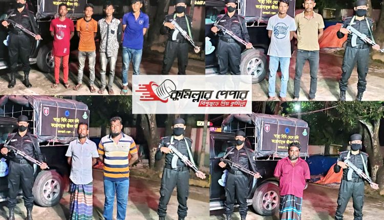গ্রেফতারকৃতরা হলো, জেলার সদর দক্ষিণ উপজেলার শাকতলা গ্রামের আকাশ, একই উপজেলার রায়পুর গ্রামের মোঃ আব্দুল হক ও কালিকিংকনপুর গ্রামের মোঃ ইউনুছ আরিফ। এছাড়া সদর উপজেলার গোবিন্দপুর গ্রামের তৌফিকুর রহমান মারুফ, মুরাদনগর উপজেলার নুরুল ইসলাম, চান্দিনা উপজেলার নাওতলা গ্রামের আব্দুল হক ও রবিউল্লাহ , বুড়িচংয়ের নয়কামতা গ্রামের মোঃ রবিউল আলম এবং নারায়ণগঞ্জ জেলার রুপগঞ্জ নোয়াপাড়া গ্রামের আব্দুল আলী।