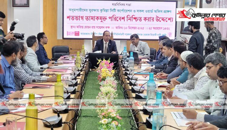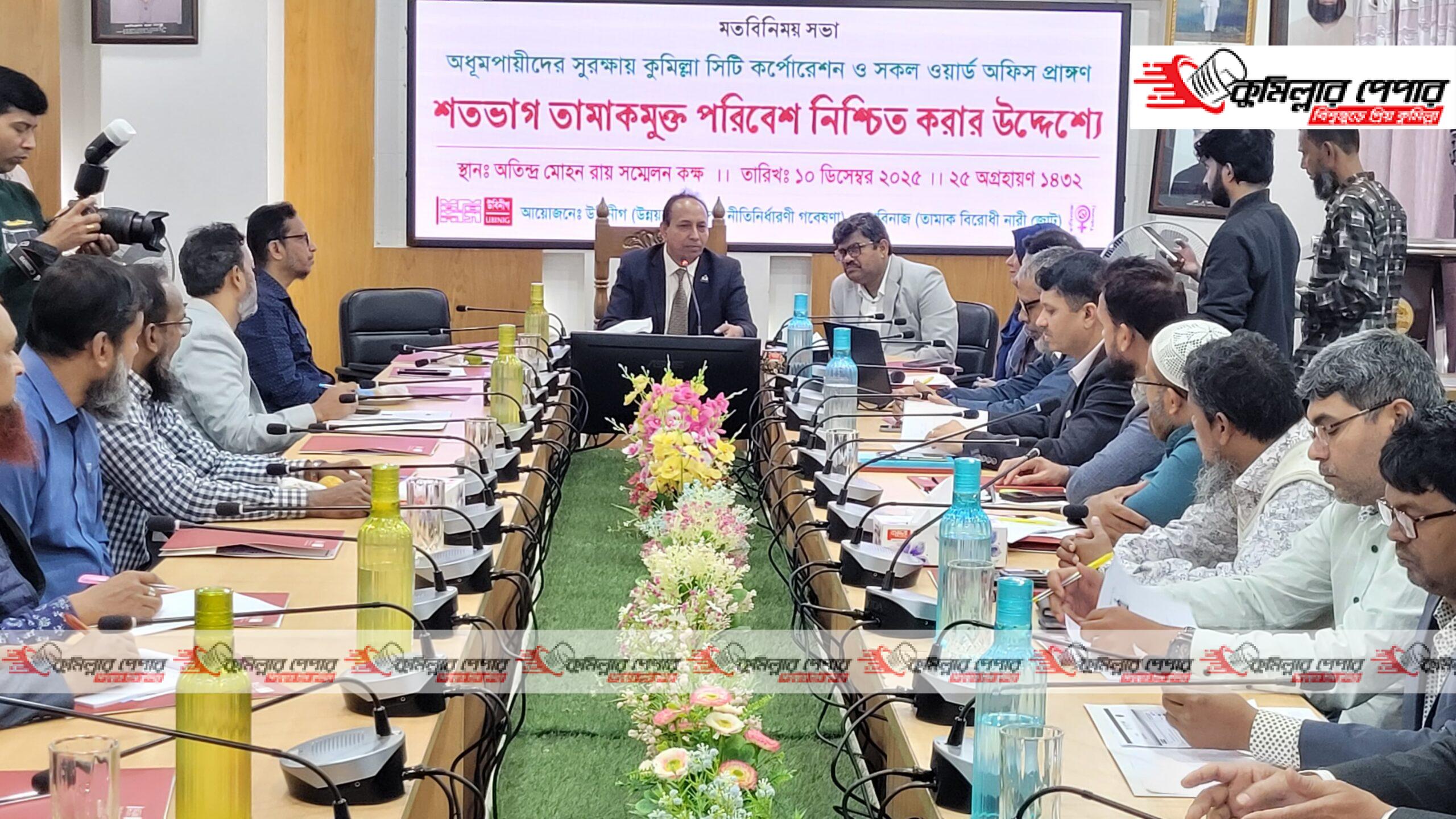 কুমিল্লা সিটি কর্পোরেশনের অধীনস্থ সকল অফিস প্রাঙ্গণকে শতভাগ তামাকমুক্ত করতে দ্রুত উদ্যোগ নেওয়া হবে বলে জানিয়েছেন প্রশাসক মোঃ শাহ আলম। তিনি বলেন, জনস্বাস্থ্য সুরক্ষা নিশ্চিত করতে তামাকমুক্ত পরিবেশ গড়ে তোলার বিকল্প নেই। এ বিষয়ে আয়োজক সংস্থাগুলোর সহযোগিতা নিয়ে শিগগিরই বাস্তবায়ন কার্যক্রম শুরু করা হবে।