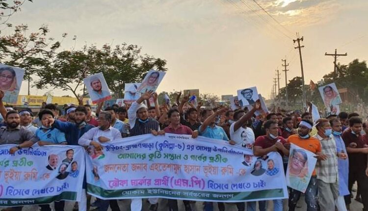 কুমিল্লা ৫ আসনের নৌকা প্রতীক প্রত্যাশী কেন্দ্রীয় যুবলীগের সহ সম্পাদক এহতেশাম রুমি’র নির্বাচনী শোডাউন
