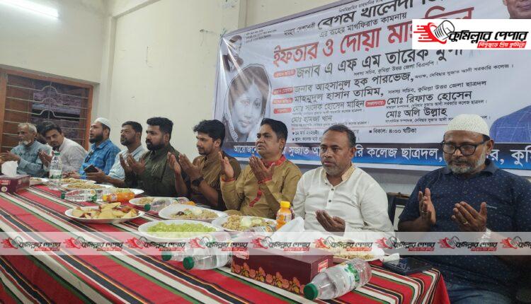 সাবেক প্রধানমন্ত্রী মরহুম খালেদা জিয়ার রুহের মাগফেরাত কামনায় কুমিল্লার দেবিদ্বার সুজাত আলী সরকারি কলেজ ছাত্রদলের উদ্যোগে ইফতার ও দোয়া মাহফিল অনুষ্ঠিত হয়েছে।