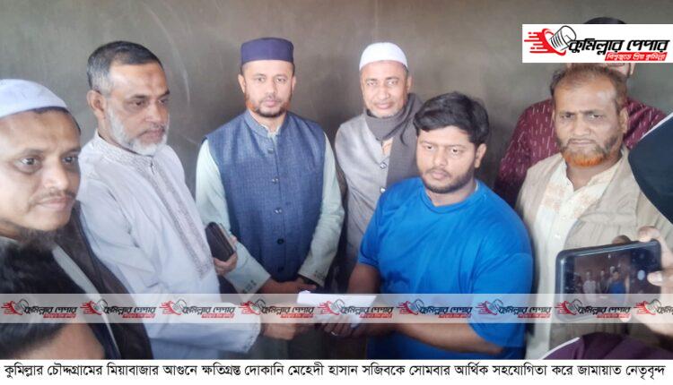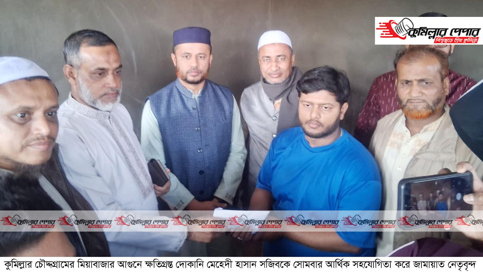 কুমিল্লার চৌদ্দগ্রামের মিয়াবাজার-ঘাসিগ্রাম সড়কে আগুনে ক্ষতিগ্রস্ত দোকানি মেহেদী হাসান সজিবকে আর্থিক সহযোগিতা করেছে জামায়াত। সোমবার দোকান পরিদর্শন শেষে সজিবের হাতে নগদ অর্থ তুলে দেন উপজেলা জামায়াত আমীর মাহফুজুর রহমান।