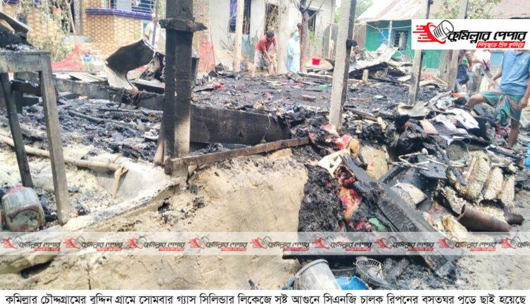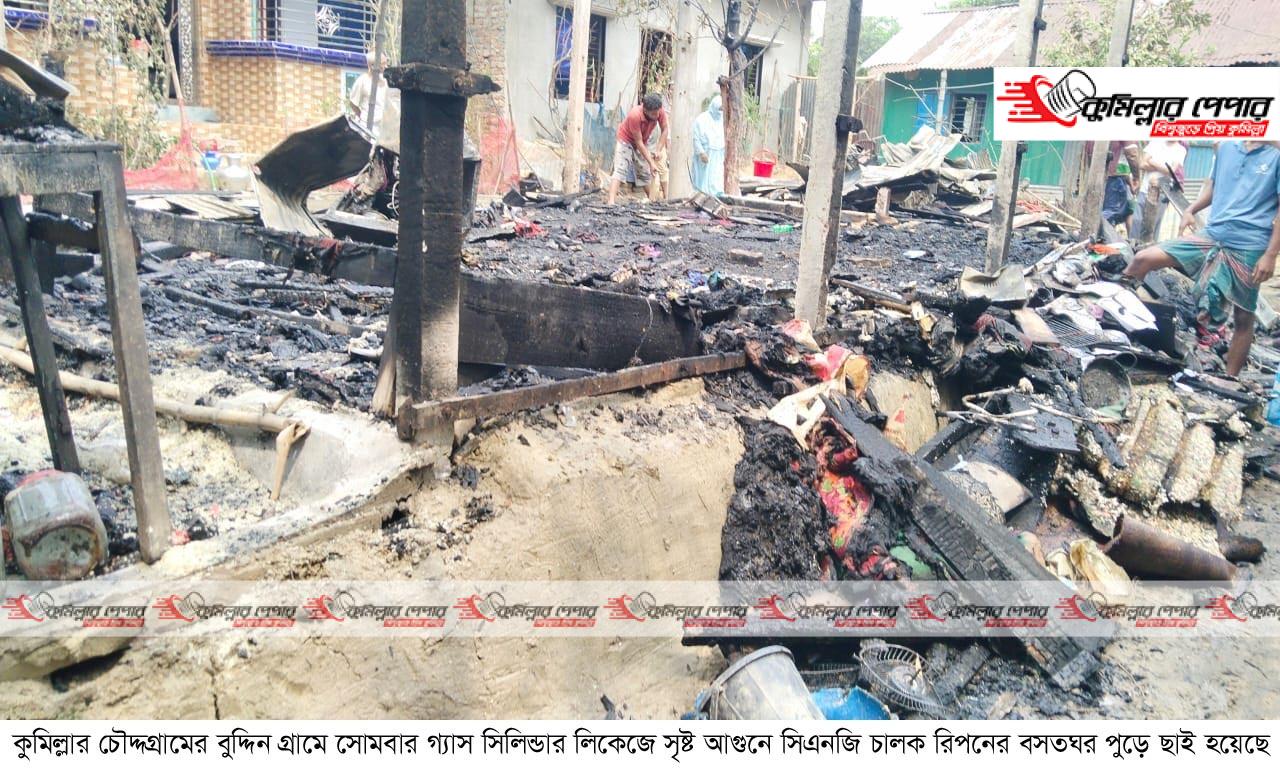 কুমিল্লার চৌদ্দগ্রামে গ্যাস সিলিন্ডার লিকেজে সৃষ্ট আগুনে শাখাওয়াত হোসেন রিপন নামে এক সিএনজি চালকের বসতঘর পুড়ে ছাই হয়েছে। এতে ঘরে থাকা আসবাবপত্র, নগদ টাকা ও স্বর্ণালঙ্কারসহ আনুমানিক আট লক্ষাধিক টাকার ক্ষতি হয়েছে।