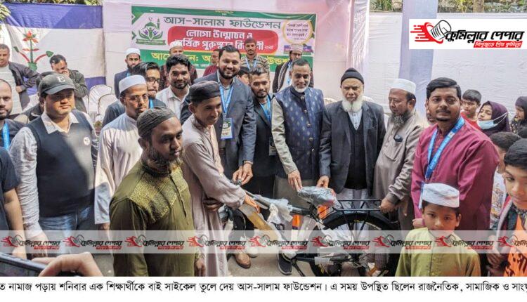 শনিবার পৌর এলাকার রামরায়গ্রাম উত্তর পাড়া বায়তুল মামুর জামে মসজিদ প্রাঙ্গনে আয়োজিত অনুষ্ঠানে প্রধান অতিথি ছিলেন উপজেলা জামায়াতের আমীর মাহফুজুর রহমান। আস-সালাম ফাউন্ডেশনের সিনিয়র উপদেষ্টা রাসেল আহম্মেদের সভাপতিত্বে ও সভাপতি মিরাজ মজুমদারের সঞ্চালনায় বিশেষ অতিথি ছিলেন সাবেক চেয়ারম্যান আবুল কাশেম, কাজী আবুল হাশেম, জাকির মজুমদার, সোলায়মান মজুমদার, ফখরুল আলম মজুমদার, চৌদ্দগ্রাম প্রেস ক্লাবের সিনিয়র সহ-সভাপতি মোঃ এমদাদ উল্যাহ. যুবনেতা হাসান, মুফতি আইয়ুব আনসারী, শিক্ষক প্রতিনিধি আল আমিন, ফয়েজ আহমদ, রেজাউল করিম। এ সময় উপস্থিত ছিলেন আস-সালাম ফাউন্ডেশনের স্বেচ্ছাসেবক পরিষদের সভাপতি মোঃ নাসিম, সদস্য তানিম, কাজী সাকিব, সাদমানী রহমান মিম, খন্দকার রাশেদ, কাজী জিসান, অয়ন, রবীন, হাফেজ খালেদ সাইফুল্লাহসহ ছাত্র-ছাত্রী ও অভিভাবকসহ এলাকার গণ্যমান্য ব্যক্তিবর্গ। গুরুত্বপূর্ণ আলোচনা শেষে নিয়মিত নামাজ, সাধারণ জ্ঞান প্রতিযোগিতা, উন্মুক্ত কুইজ ও বার্ষিক রচনা প্রতিযোািগতায় বিজয়ী শতাধিক ছাত্র-ছাত্রীদের মাঝে বাই সাইকেল, ক্রেষ্ট, ব্যাগ, বই, খাতা, জ্যামিতি বক্সসহ পুরস্কার বিতরণ করা হয়। এরআগে ফাউন্ডেশনের লগো উম্মোচন করেন অতিথিবৃন্দ। অনুষ্ঠানে আর্থিক সহযোগিতা করেন আমেরিকা প্রবাসী কাজী এনাম ও পর্তুগাল প্রবাসী রাসেল আহমেদ। গত দুই বছর ধরে আস-সালাম ফাউন্ডেশনের উদ্যোগে পৌর এলাকার ছাত্র-ছাত্রীদের পড়ালেখার পাশাপাশি নামাজ, খেলা, কুইজ ও রচনা প্রতিযোগিতাসহ বিভিন্ন প্রতিযোগিতার আয়োজন সর্বমহলে প্রশংসিত হয়েছে।
