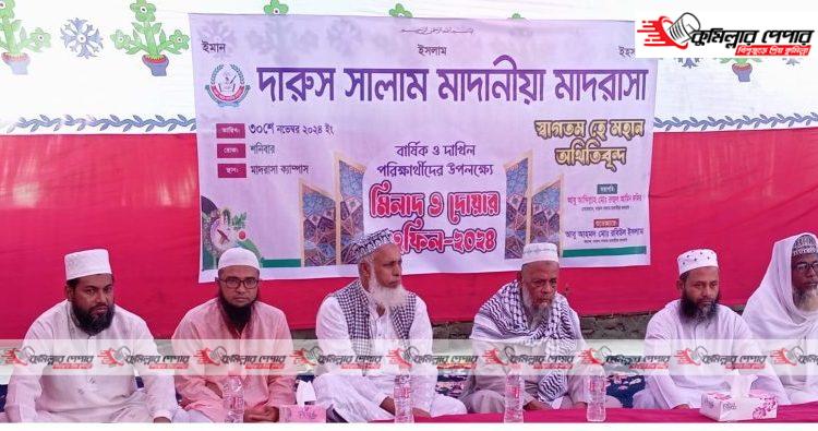 বুড়িচং উপজেলা সদরে অবস্থিত দারুস সালাম মাদানীয়া মাদরাসার বার্ষিক মিলাদ ও দোয়া মাহফিল গতকাল ৩০ নভেম্বর সকাল ১০টায় মাদরাসা কমপ্লেক্সে অনুষ্ঠিত হয়েছে।