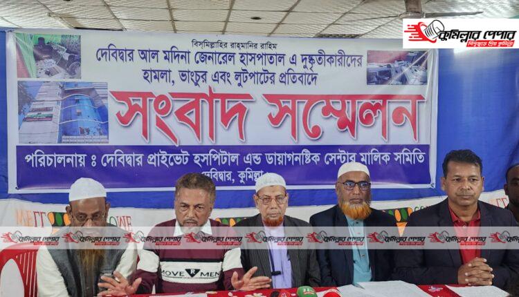 কুমিল্লার দেবিদ্বারে আল মদিনা জেনারেল হাসপাতাল ও ট্রমা সেন্টারে সন্ত্রাসী হামলা, ভাঙচুর ও লুটপাটের ঘটনার প্রতিবাদে তিন দফা কর্মসূচি ঘোষণা করেছে প্রাইভেট হাসপাতাল ও ডায়াগনস্টিক সেন্টার মালিক সমিতি। মঙ্গলবার (৯ ডিসেম্বর) সকাল ৮টা থেকে দুপুর ১২টা পর্যন্ত ৪ ঘণ্টা কর্মবিরতি পালনসহ মানববন্ধন ও স্বারকলিপি প্রদান কর্মসূচি ঘোষণা করা হয়।