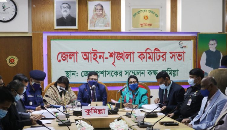 করেনা ভাইরাাসের সংক্রমণ মহামারিতে থেমে যাওয়া কুমিল্লা জেলা আইনশৃঙ্খলা কমিটির সভা আবারো ১০ মাস পর অনুষ্ঠিত হয়েছে। জেলা প্রশাসক মোঃ আবুল ফজল মীরের সভাপতিত্বে গতকাল বেলা ১১টা থেকে ৪ ঘন্টা ব্যাপী এই সভা অনুষ্ঠিত হয়েছে। সভাতে আইনশৃঙ্খলা কমিটির সকল সদস্যরাই উপস্থিত ছিলেন। দীর্ঘদিন পর আবারো আইনশৃঙ্খলা কমিটির সভা অনুষ্ঠিত হওয়ায় জেলার সার্বিক পরিস্থিতি নিয়ে সরব ছিলেন সংসদ সদস্য, উপজেলা চেয়ারম্যান, প্রশাসনের কর্মকর্তাসহ বিভিন্ন সংগঠনের প্রতিনিধিগণ। অপরাধ ও সামাজিক সমস্যা ও সম্ভাবনা নিয়ে আলোচনায় মুখর ছিলো সভা। করোনায় জন সমাবেশ নিষিদ্ধ থাকায় জুম আ্যপসের মাধ্যমে গত ১০ মাস এই সভা অনুষ্ঠিত হয়ে আসছিলো। আবারো সশরীরে সভাতে অংশগ্রহণ করতে পেরে খুশি হয়েছেন বলে জানিয়েছেন অংশগ্রহনকারীরা।