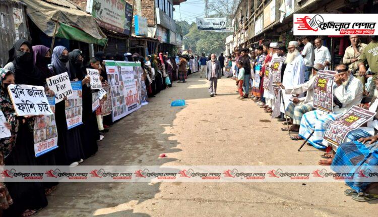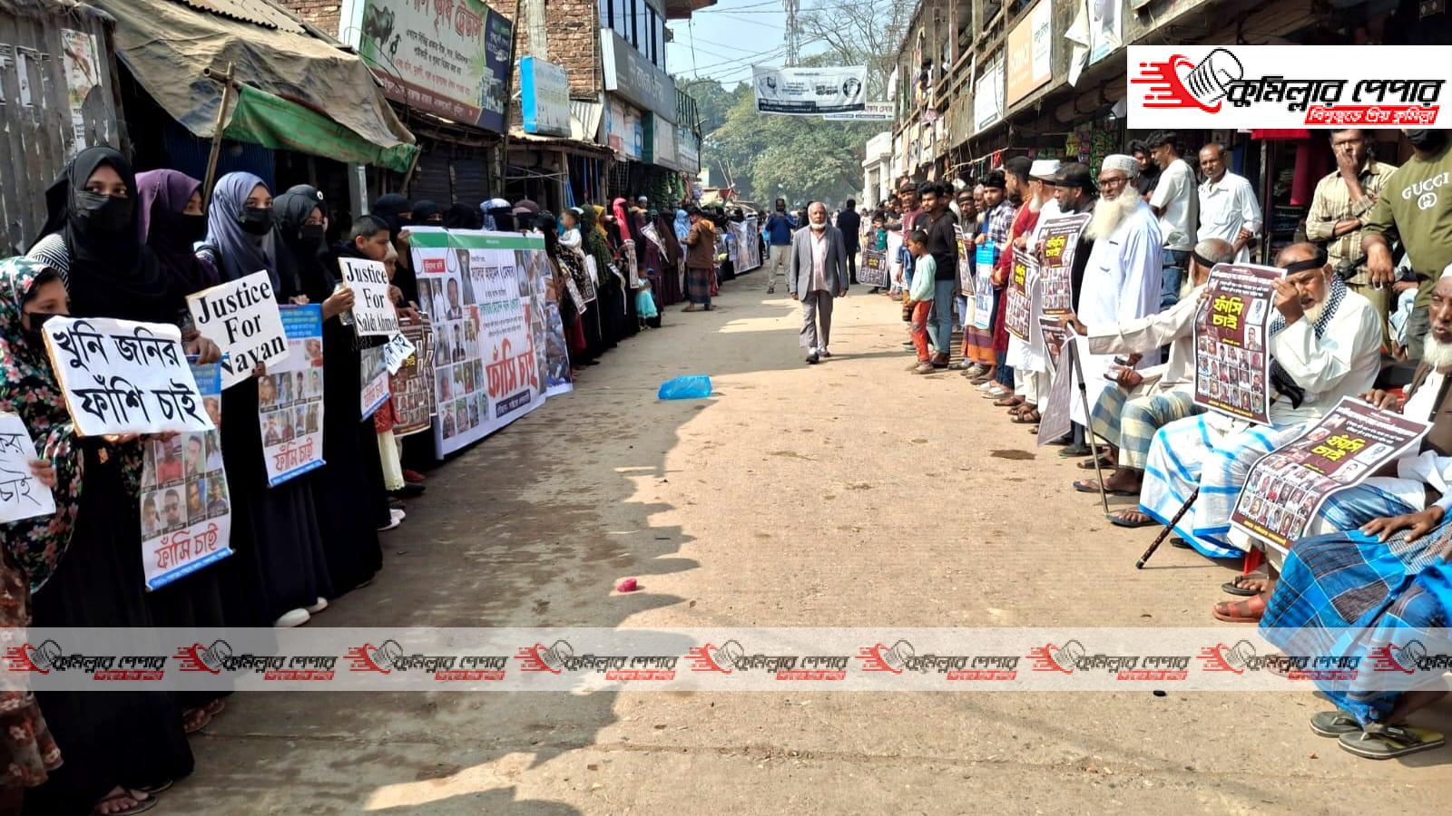 কুমিল্লার নাঙ্গলকোট উপজেলার বক্সগন্জ ইউনিয়নের দক্ষিণ আলীয়ারা গ্রামের সাবেক ইউপি সদস্য ছালেহ আহাম্মদ ও দেলোয়ার হোসেন নয়নের হত্যাকারীদের বিচার ও আসামীদের গ্রেপ্তারের দাবীতে বৃহস্পতিবার দুপুরে বক্সগন্জ উচ্চ বিদ্যালয়ের সামনের সড়কে এ মানববন্ধন কর্মসূচি পালিত হয়েছে।