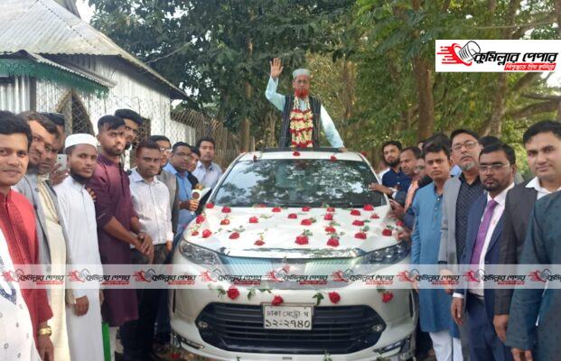 কুমিল্লার ব্রাহ্মণপাড়ায় নাগাইশে ফুল সজ্জিত ছাদ খোলা গাড়িতে প্রধান শিক্ষক মোশারফ হুসেনের রাজকীয় বিদায় দেওয়া হয়েছে।