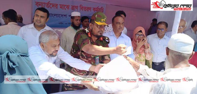 বুধবার দুপুরে কুমিল্লার বুড়িচং উপজেলার বন্যা কবলিত বিভিন্ন এলাকা পরিদর্শন শেষে গাজীপুর মডেল মসজিদ এলাকায় বন্যার্তদের মাঝে খাদ্য সামগ্রী বিতরণ করেন