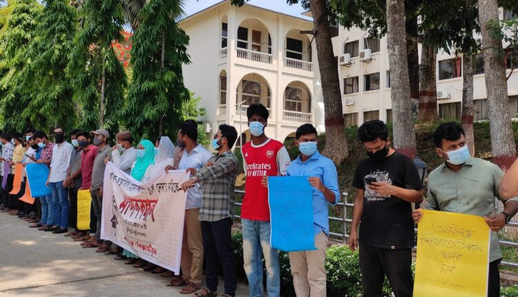 অর্থনীতি বিভাগের শিক্ষার্থী আহমেদ আবির রায়হানের সঞ্চালনায় এ সময় শিক্ষার্থীরা ক্লাস পরীক্ষা চালু করার দাবি জানান। এসময় সায়েন্স ক্লাবের সভাপতি শাখাওয়াত শাওন বলেন, আমাদের দেশেত মতো কোথাও এভাবে টানা ক্লাস পরীক্ষা বন্ধ নেই। আমাদের পার্শ্ববর্তী দেশ ভারতেও এতো আক্রান্তের পরেও তারা ক্যাম্পাস খোলা রেখেছে। আমি এটাকে লকডাউন বলবো না। এটার মাধ্যমে শিক্ষাব্যবস্থা ধ্বংস করে দেয়া হচ্ছে।