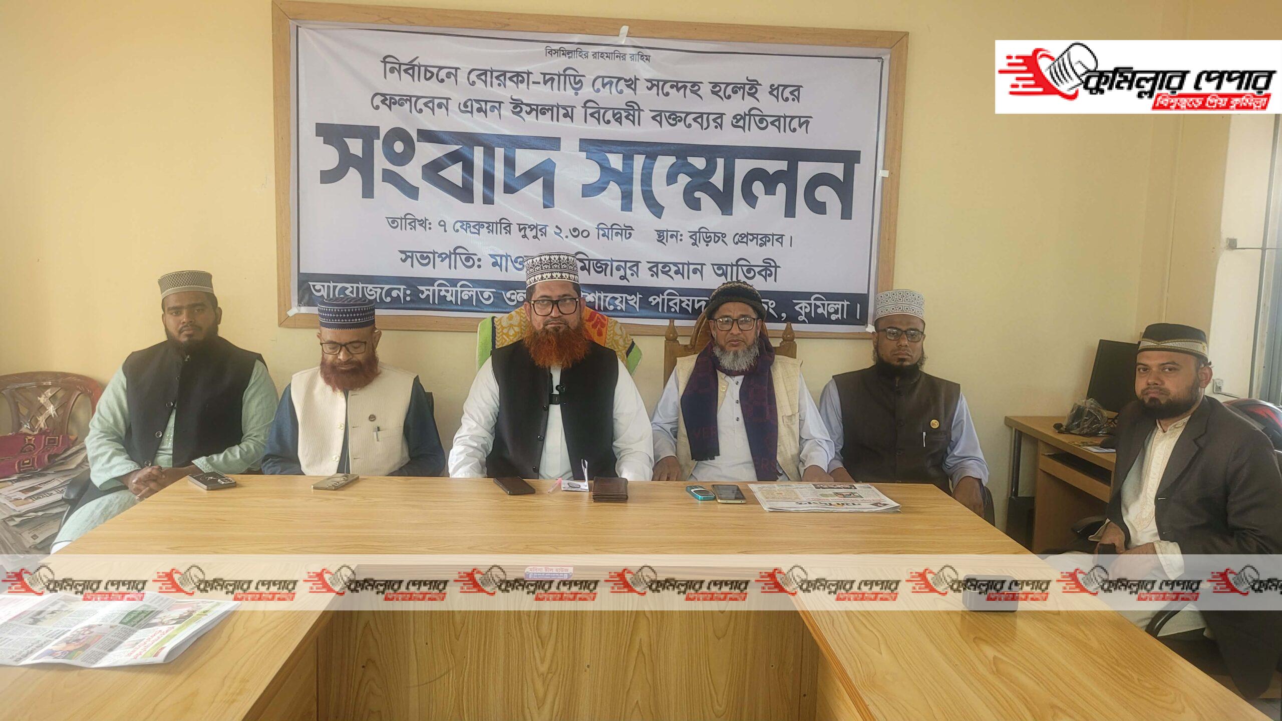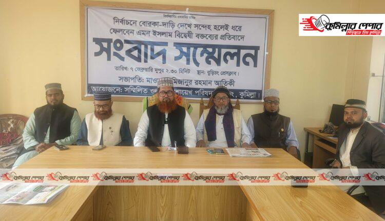 বোরকা ও দাড়ি নিয়ে কটুক্তি করার প্রতিবাদে সংবাদ সম্মেলন করেছেন কুমিল্লা উত্তর জেলা সম্মিলিত ওলামা-মাশায়েখ পরিষদ।