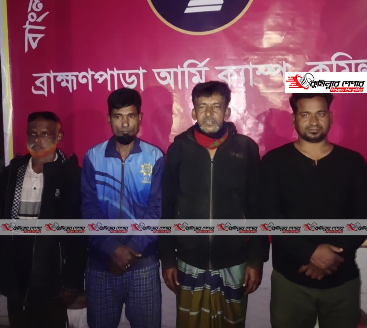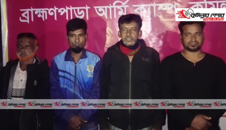 আটককৃতরা হলো- উপজেলার রামচন্দ্রপুর গ্রামের মৃত মিরাজুল ইসলামের ছেলে মো. নুর মোহাম্মদকে ৩ মাস, বুড়িচং কংশনগর গ্রামের তারু মিয়ার ছেলে আবু ইউছুফকে ৩ মাস, বুড়িচং পশ্চিমসিংহ গ্রামের মোহাব্বত আলীর ছেলে আনোয়ার হোসেনকে ৩ মাস এবং কংশনগর গ্রামের আব্দুস সাত্তারের ছেলে আবু মুসাকে ৫ মাসের জেল প্রদান করা হয়।