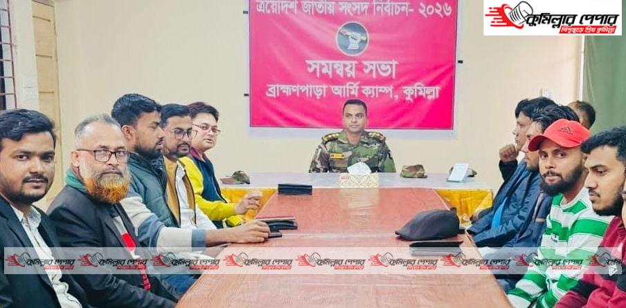 আসন্ন ত্রয়োদশ জাতীয় সংসদ নির্বাচন অবাধ, সুষ্ঠু ও শান্তিপূর্ণ পরিবেশে সম্পন্ন করার লক্ষ্যে কুমিল্লার ব্রাহ্মণপাড়ায় কর্মরত সাংবাদিকদের সঙ্গে মতবিনিময় সভা করেছে বাংলাদেশ সেনাবাহিনী।
