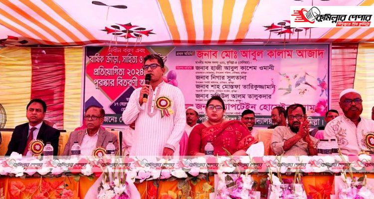 শনিবার (১৭ ফেব্রুয়ারি) সকালে দেবিদ্বার মফিজ উদ্দিন আহাম্মেদ পাইলট বালিকা উচ্চ বিদ্যালয় মাঠে বার্ষিক ক্রীড়া, সাহিত্য ও সাংস্কৃতিক প্রতিযোগিতার পুরস্কার বিতরণ অনুষ্ঠানে প্রধান অতিথির বক্তব্যে এসব কথা বলেন তিনি।