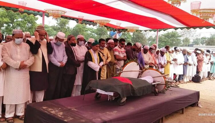 বাদ আসর মরহুমের নিজ বাড়ী বুড়িচং উপজেলার পীরযাত্রাপুর ইউনিয়নের গোপিনাথপুর গ্রামে জানাজা শেষে পারিবারিক কবরস্থান দাফন করা হয়।