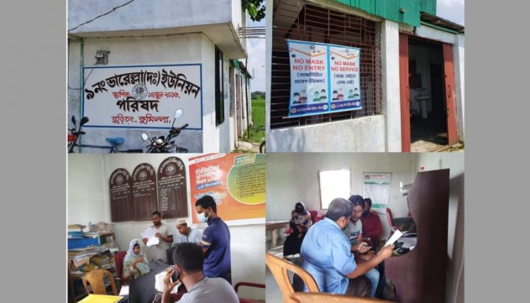 এই যখন সারাদেশের চিত্র, তখন কুমিল্লার এই সমৃদ্ধ জনপদের ইউনিয়ন পরিষদের প্রবেশ মুখে নো মাস্ক, নো এন্ট্রি লেখা ব্যানার ঝুলিয়ে রাখলেও ইউনিয়ন পরিষদের সেবাদানকারী বা সেবাগ্রহণকারীদের মাস্কবিহীন অবস্থায় অবাধে দেখা গেছে।
