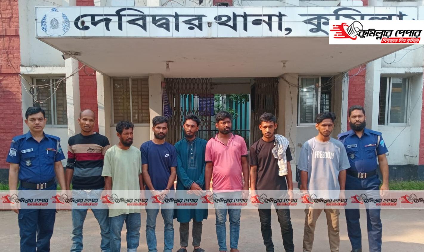 আটককৃতরা হলেন মুরাদনগর উপজেলার নবীপুর পশ্চিম ইউনিয়নের মো. এনাম সরকার (৩৪) ও আহমেদ আলী (৩০), দেবিদ্বারের ভিংলাবাড়ী এলাকার মো. লিটন (২৪) ও মো. লিটন (৪২)। এ ছাড়া অভিযান চলাকালে পৌরসভার পুরাতন বাজার এলাকার মো. সুমন (৩০) এবং মাশিকাড়া এলাকার মো. শরীফ (২৪) নামে চোর চক্রের আরও ২ সদস্যকে আটক করা হয়।