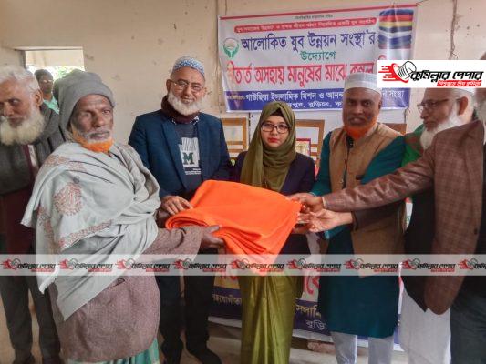উল্লেখ্য, আলোকিত যুব উন্নয়ন সংস্থা প্রতি বছরের ন্যায় এ বছরও দরিদ্র ও সুবিধাবঞ্চিত অসহায় শীতার্ত মানুষের মাঝে শতাধিক কম্বল ও খাবার বিতরণ করেছে।